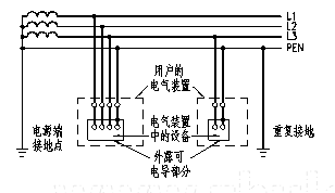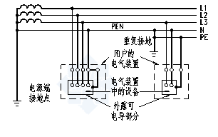 -PEN線產(chǎn)生電壓降,外露導(dǎo)電部分對地有電壓;
